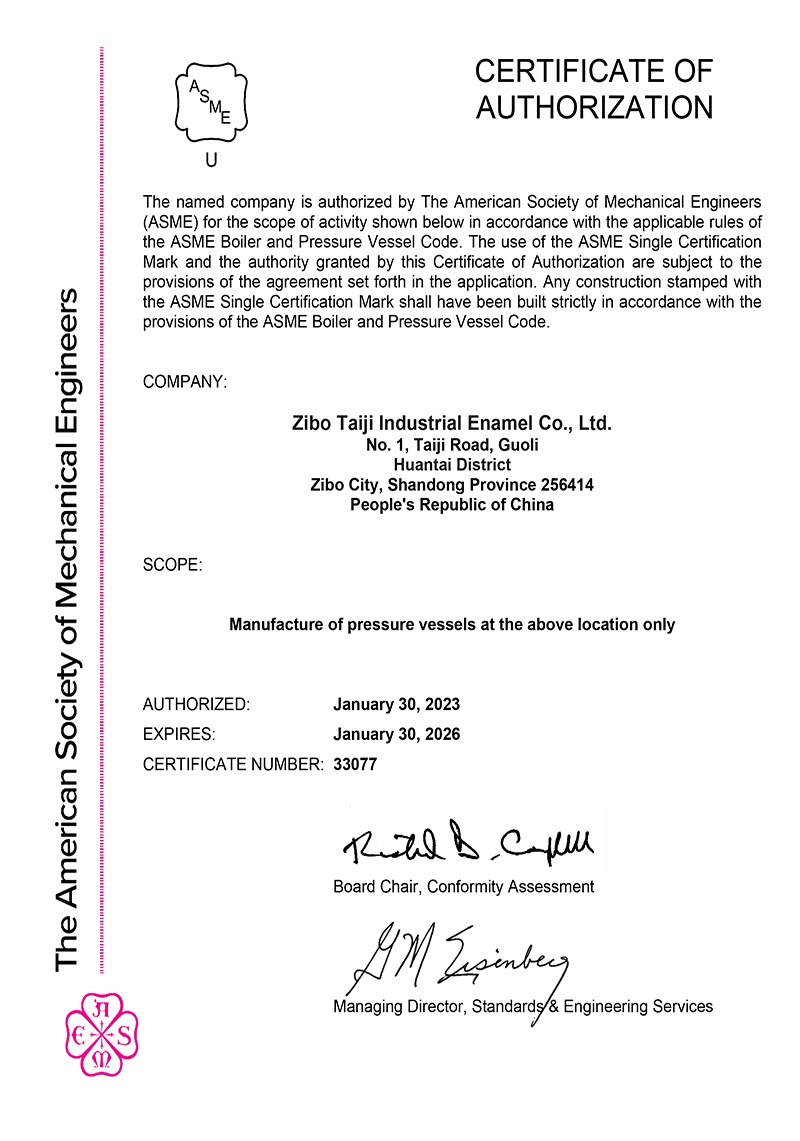 HOW TO CHOOSE淄博太極工業(yè)搪瓷有限公司專業(yè)制造搪玻璃設(shè)備、氟塑料設(shè)備及碳鋼、不銹鋼壓力容器的大型企業(yè)。現(xiàn)有員工1000余人,注冊資金11900萬元,占地600畝,生產(chǎn)車間19萬平米,凈資產(chǎn)超20億元。太極以人為本,單用于職工的居住生活投入已達(dá)3億,使工者有其房,家人生活及孩子....[查看更多]